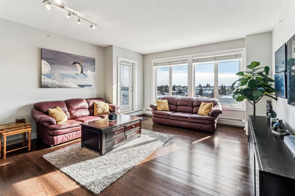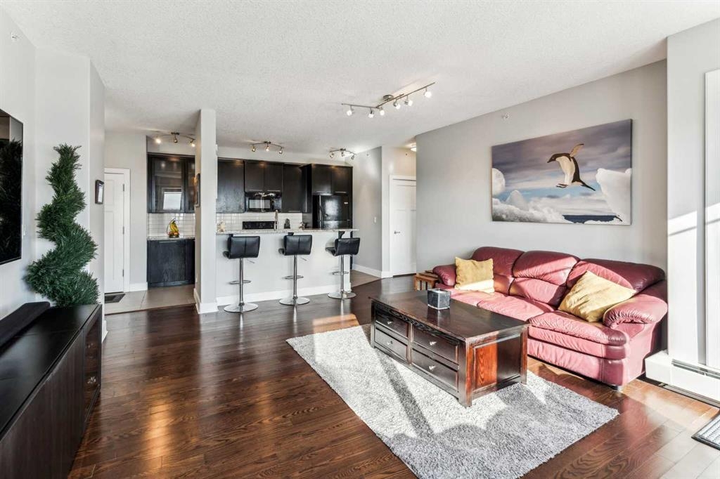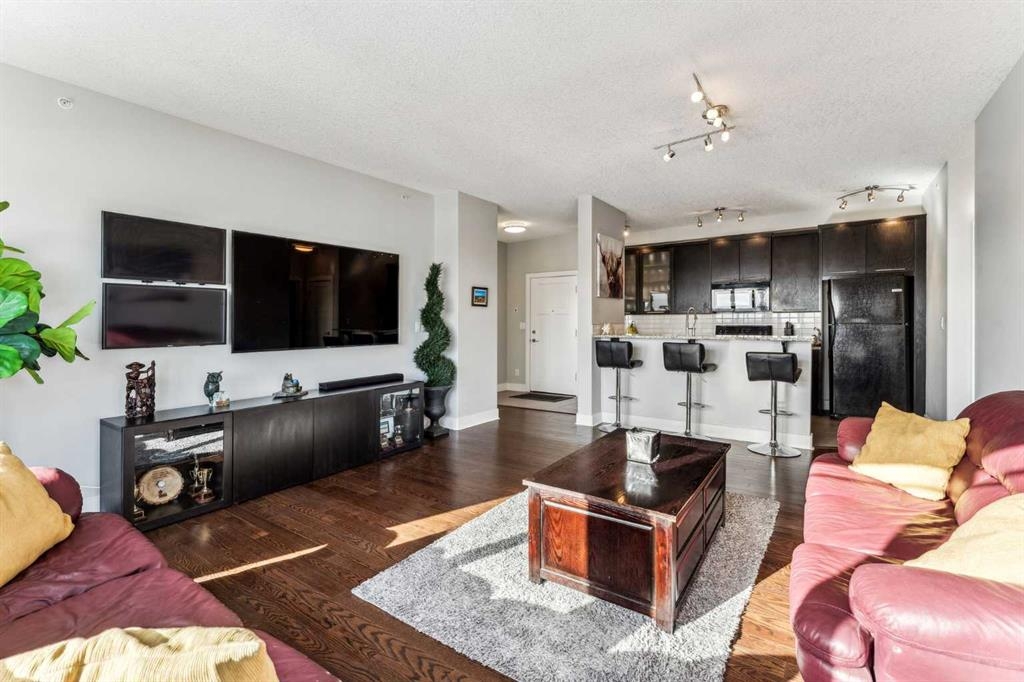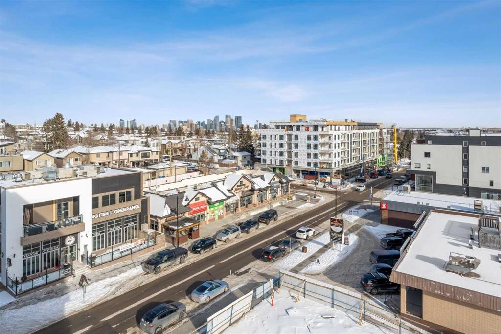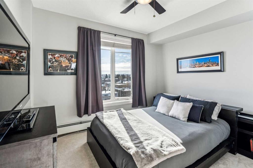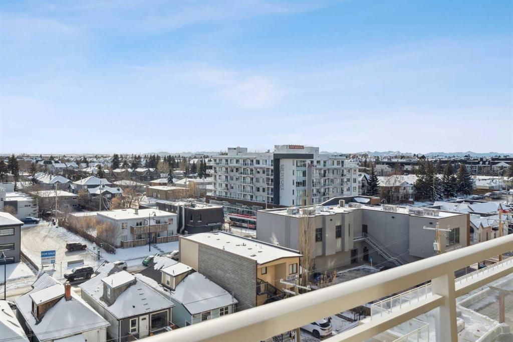 JUST PRICE REDUCED! EXCEPTIONAL VALUE! Welcome to the Treo @ Marda Loop! A sun-soaked, 5th floor, 940 Ft2 retreat with 2 bedrooms and 2 full bathrooms. Offering an incredible blend of modern style and unsurpassable location! This unit is nicely tucked away at the end of a hallway in a concrete building providing additional tranquility. Step inside to 9-foot ceilings and chic décor, where natural light floods the south-facing living room and bedrooms. The newly installed plush carpet and under-pad in the bedrooms adds a fresh touch, while the open-concept living area is perfect for entertaining. The elongated kitchen features sleek quartz countertops, rich dark espresso cabinetry, and a spacious breakfast bar. The seamless flow is complemented by rich laminate flooring, creating a warm atmosphere. The oversized front storage room, along with an assigned storage locker and bike storage, ensures ample space for all your needs. Moreover, enjoy the convenience of in-suite laundry! Sweeping downtown and mountain views from your balcony, with the added bonus of being on the quiet side of the building. Residents have access to a communal deck on the 2nd floor. Secured, underground, heated, titled parking and 10 visitor parking stalls, makes hosting guests a breeze. Beyond the incredible features of this stunning condo, the Marda Loop neighborhood continues to elevate its urban charm with exciting new developments. Soon, residents will enjoy the convenience of an upcoming multi-use path, designed for walking and cycling. Perfect for morning jogs, leisurely strolls, or commuting on two wheels. This thoughtfully planned area has a dynamic community and array of local shops, cafés, and green spaces.