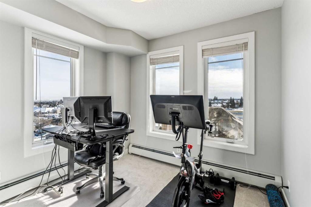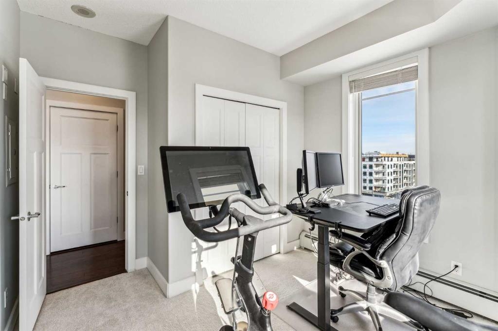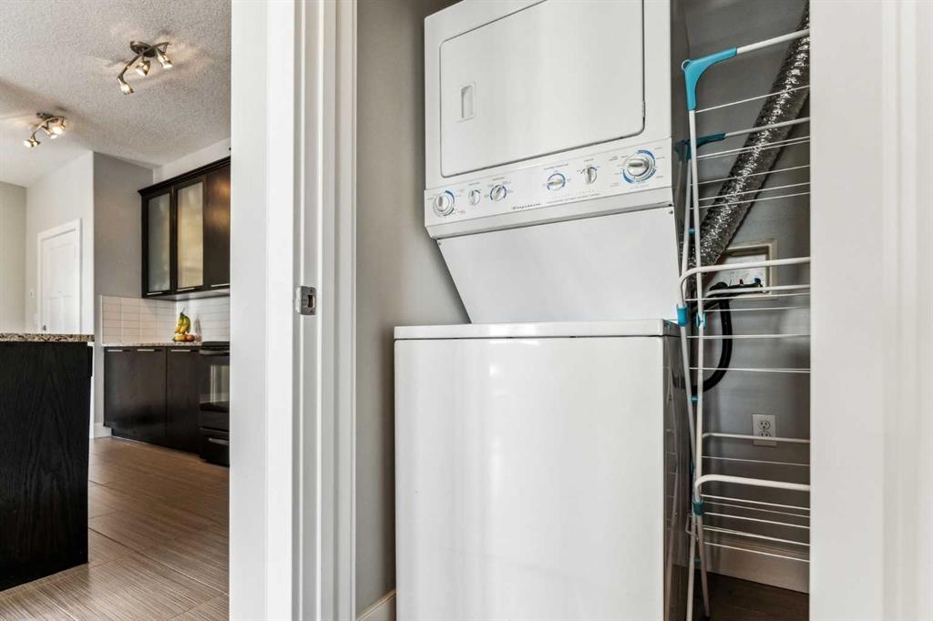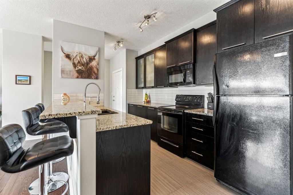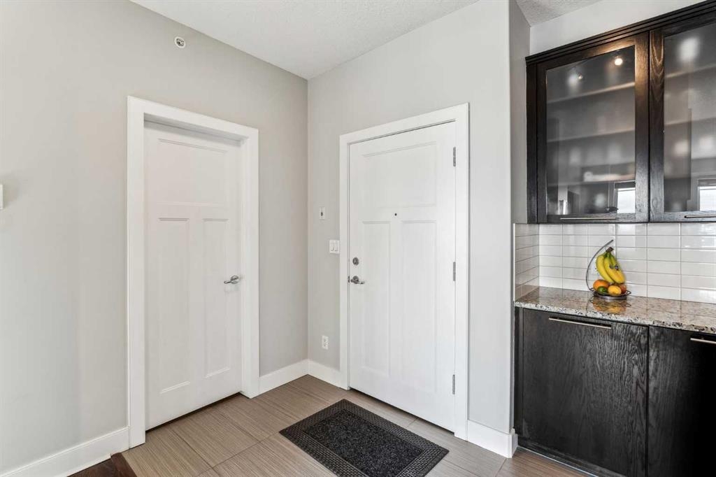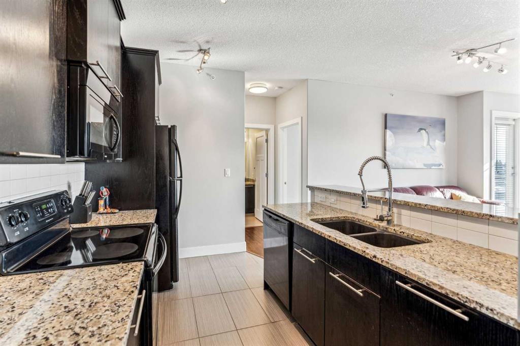 JUST PRICE REDUCED! EXCEPTIONAL VALUE! Welcome to the Treo @ Marda Loop! A sun-soaked, 5th floor, 940 Ft2 retreat with 2 bedrooms and 2 full bathrooms. Offering an incredible blend of modern style and unsurpassable location! This unit is nicely tucked away at the end of a hallway in a concrete building providing additional tranquility. Step inside to 9-foot ceilings and chic décor, where natural light floods the south-facing living room and bedrooms. The newly installed plush carpet and under-pad in the bedrooms adds a fresh touch, while the open-concept living area is perfect for entertaining. The elongated kitchen features sleek quartz countertops, rich dark espresso cabinetry, and a spacious breakfast bar. The seamless flow is complemented by rich laminate flooring, creating a warm atmosphere. The oversized front storage room, along with an assigned storage locker and bike storage, ensures ample space for all your needs. Moreover, enjoy the convenience of in-suite laundry! Sweeping downtown and mountain views from your balcony, with the added bonus of being on the quiet side of the building. Residents have access to a communal deck on the 2nd floor. Secured, underground, heated, titled parking and 10 visitor parking stalls, makes hosting guests a breeze. Beyond the incredible features of this stunning condo, the Marda Loop neighborhood continues to elevate its urban charm with exciting new developments. Soon, residents will enjoy the convenience of an upcoming multi-use path, designed for walking and cycling. Perfect for morning jogs, leisurely strolls, or commuting on two wheels. This thoughtfully planned area has a dynamic community and array of local shops, cafés, and green spaces.